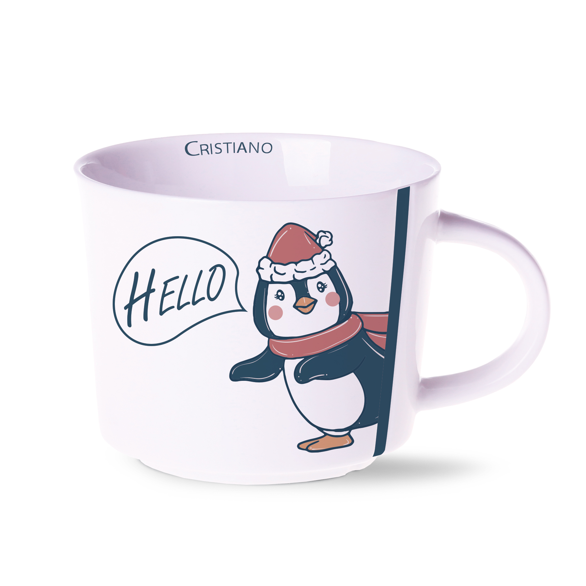 Model wykonany z porcelany. Duży, pojemny, ergonomiczny kubek. Wyróżniają go przetłoczenia po obu stronach ucha. Fason podkreślający oryginalność użytkownika.